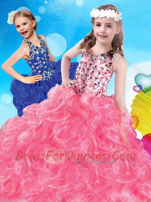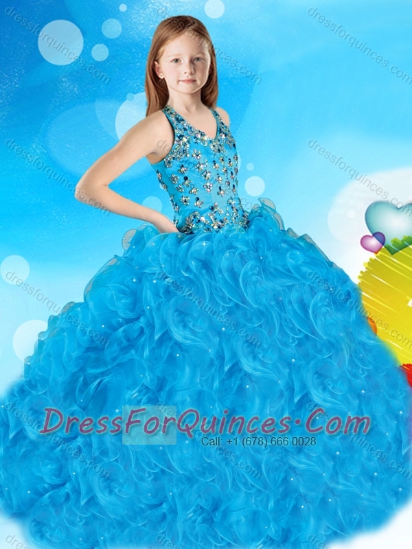 Fashionable V Neck Big Puffy Adorable Little Girl Pageant Dress with Beading and Ruffles