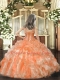 Floor Length Lace Up Kids Pageant Dress Rose Pink for Party and Sweet 16 and Quinceanera and Wedding Party with Beading and Ruffles and Sequins