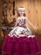 Gorgeous Fuchsia Straps Lace Up Embroidery Little Girls Pageant Gowns Sleeveless