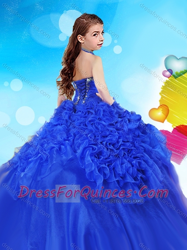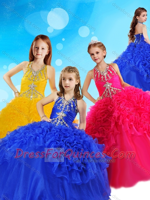 Gorgeous Halter Top Big Puffy Adorable Little Girl Pageant Dress with Beading and Ruffles