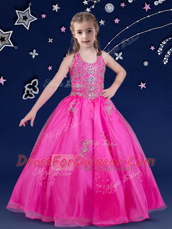 Gorgeous Organza Scoop Sleeveless Zipper Beading Little Girls Pageant Dress Wholesale in Fuchsia