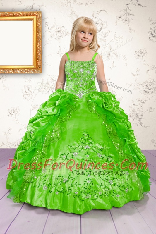 Green Sleeveless Floor Length Beading and Appliques and Pick Ups Lace Up Kids Formal Wear