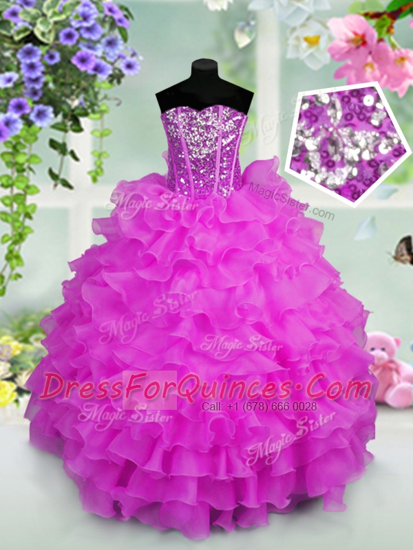 Lilac Lace Up Sweetheart Ruffled Layers and Sequins Little Girls Pageant Dress Organza Sleeveless