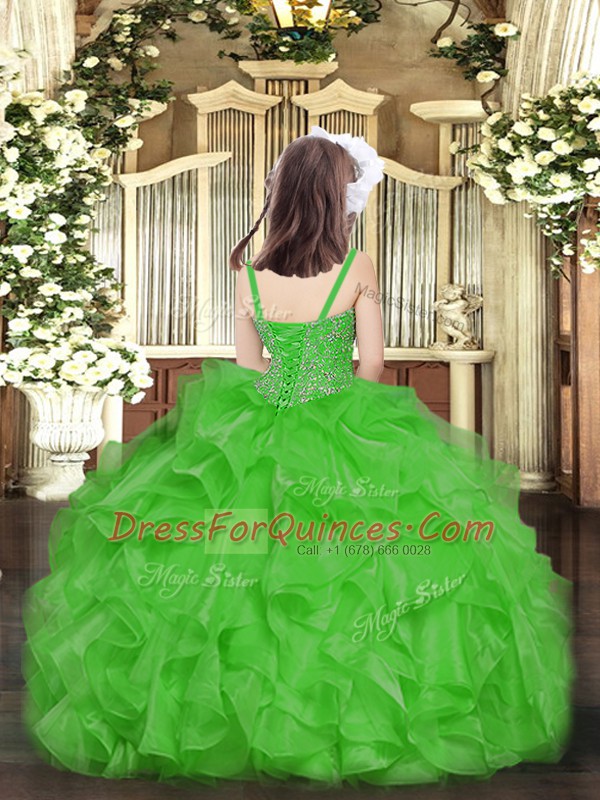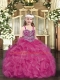 Low Price Fuchsia Sleeveless Organza Lace Up Kids Formal Wear for Party and Quinceanera