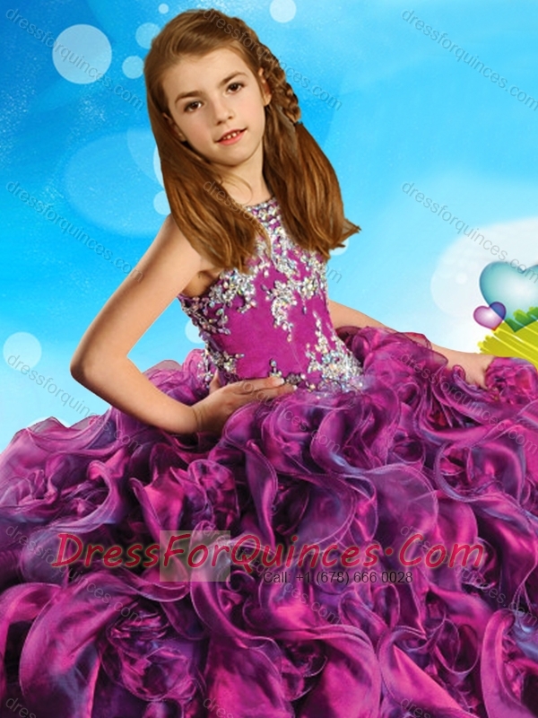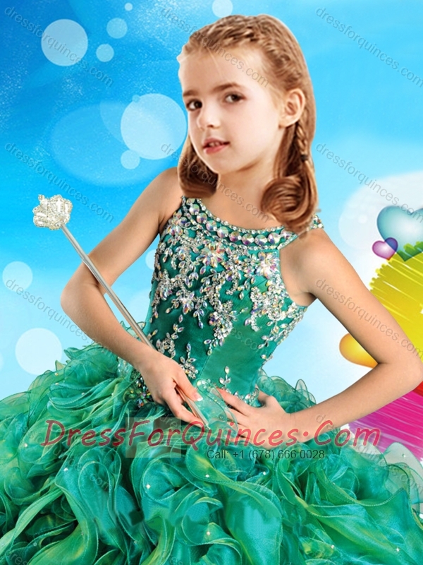 Most Popular Beaded and Ruffled Criss Cross Adorable Little Girl Pageant Dress in Organza