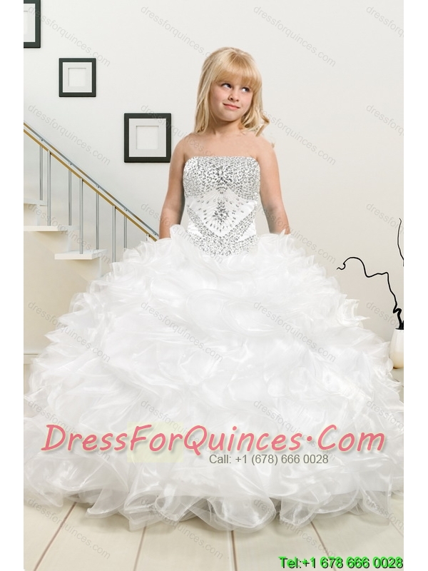 Most Popular Beading and Ruffles White Little Girl Pageant Dress