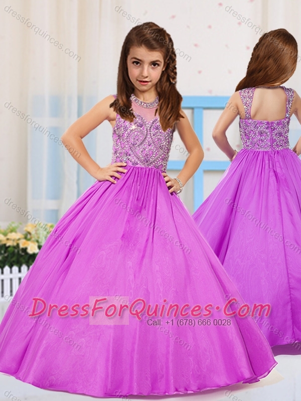 Most Popular Pincess Scoop Beaded Lilac Little Girl Pageant Dress