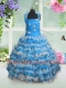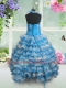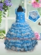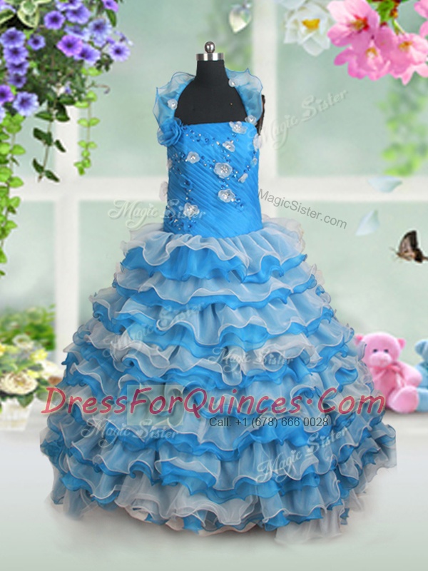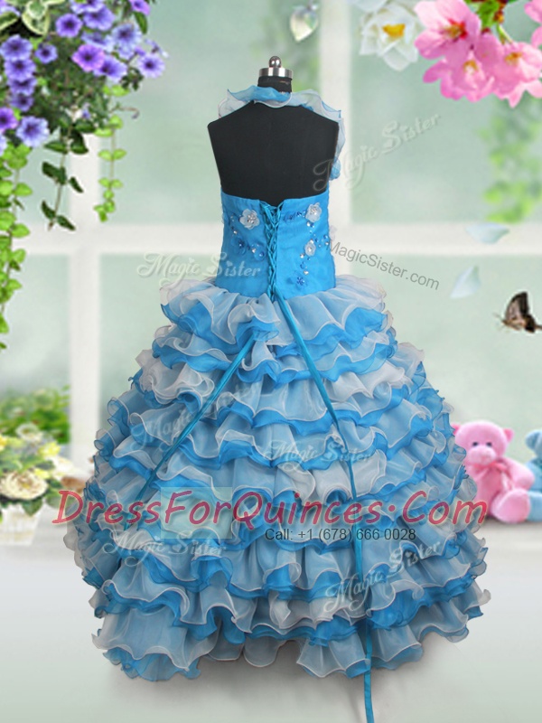 On Sale Baby Blue Kids Formal Wear Party and Wedding Party and For with Beading and Appliques and Ruffled Layers Straps Sleeveless Lace Up