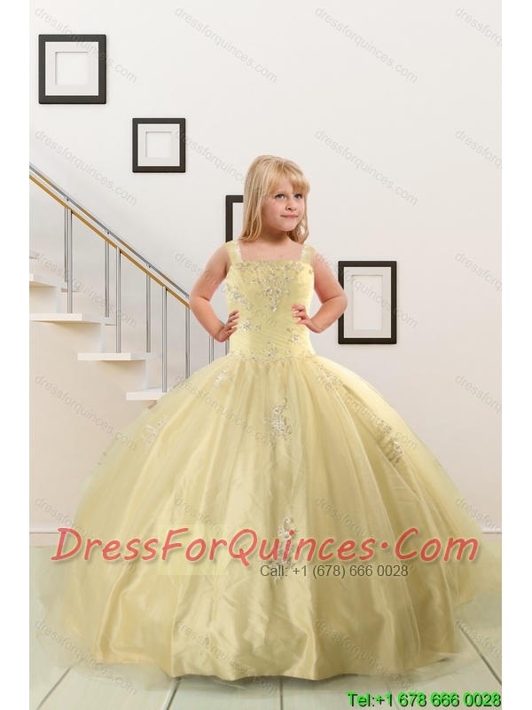 On Sales Appliques Light Yellow Little Girl Dress for 2015