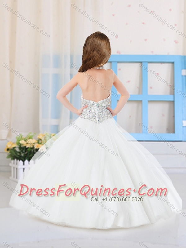 Popular Ball Gown Beaded Little Girl Pageant Dress with Halter