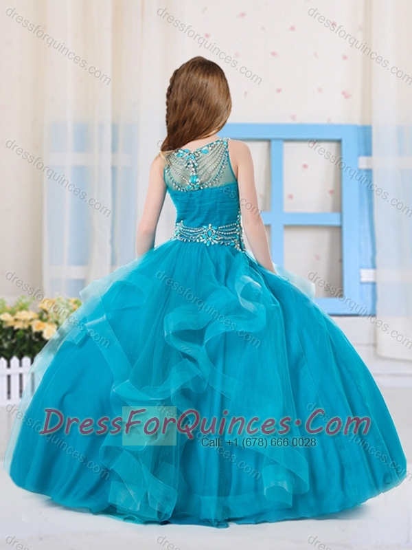Pretty Ball Gowns Organza Beaded Side Zipper Little Girl Pageant Dress with Scoop