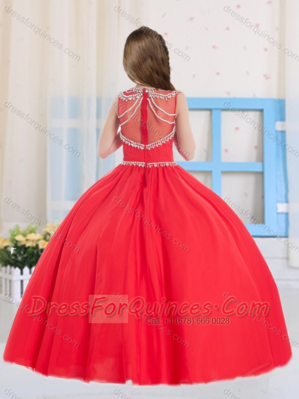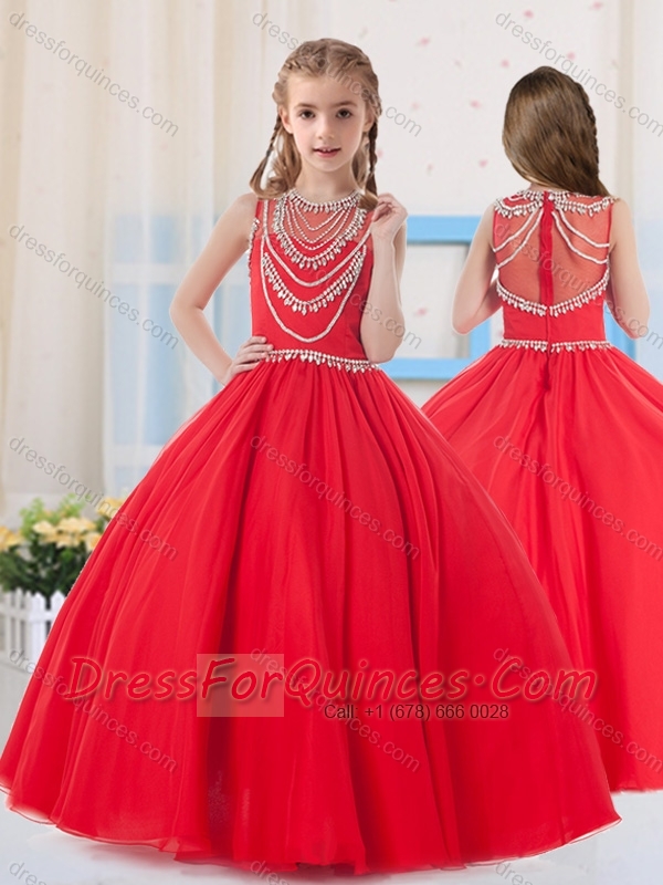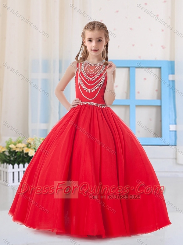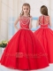 Pretty Ball Gowns Scoop Organza Red Little Girl Pageant Dress with Beading