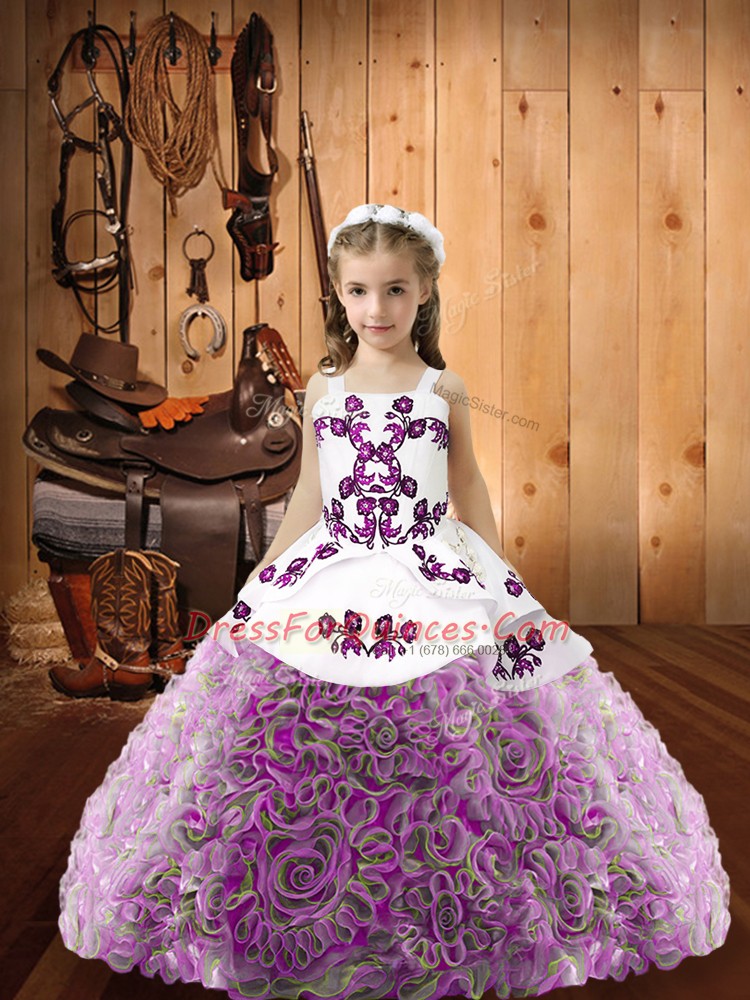 Pretty Multi-color Ball Gowns Beading Pageant Gowns For Girls Lace Up Organza and Fabric With Rolling Flowers Sleeveless Floor Length