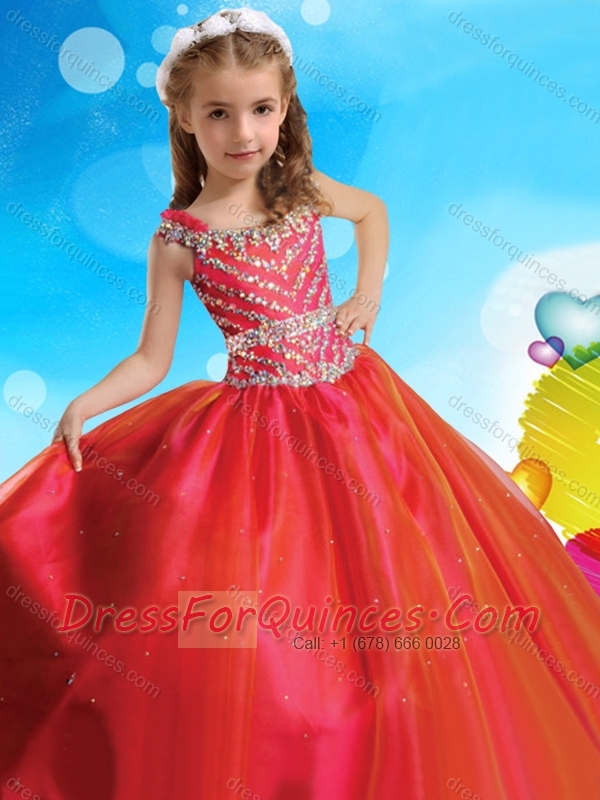 Pretty Off the Shoulder Beaded Adorable Little Girl Pageant Dress in Purple