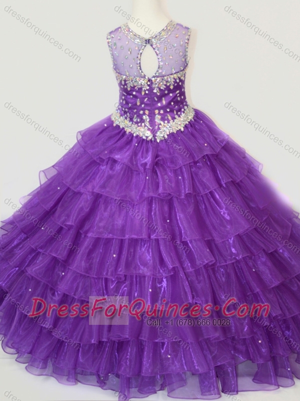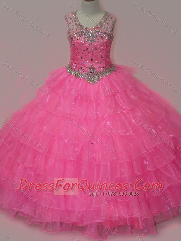 Pretty Rose Pink Little Girl Pageant Dress with Beading and Ruffled Layers