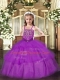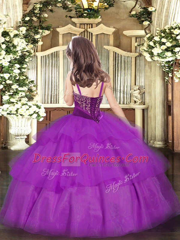 Purple Lace Up Straps Beading and Ruffled Layers Girls Pageant Dresses Organza Sleeveless