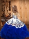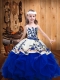 Royal Blue Organza Lace Up Straps Sleeveless Floor Length Little Girls Pageant Dress Embroidery and Ruffles