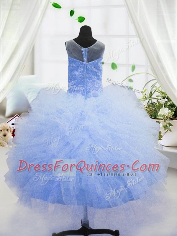Scoop Baby Blue Sleeveless Beading and Ruffles Floor Length Kids Formal Wear