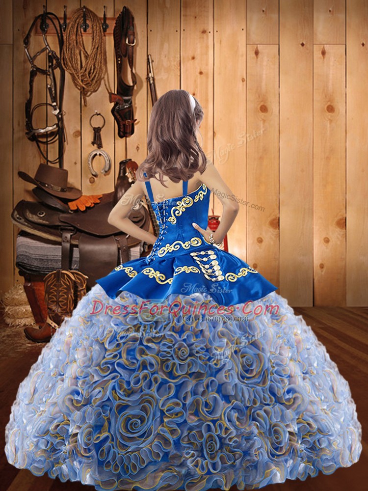 Simple Fabric With Rolling Flowers Straps Sleeveless Lace Up Embroidery and Ruffles Child Pageant Dress in Multi-color