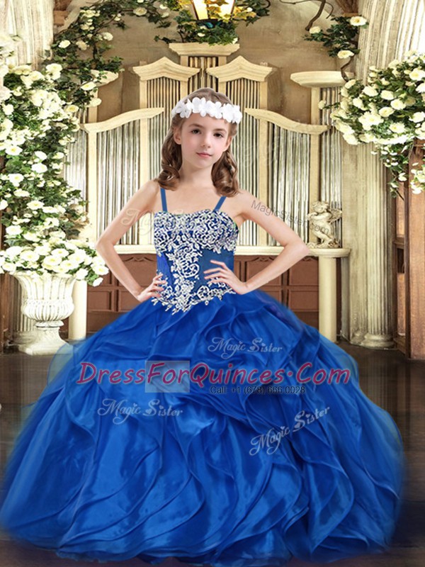 Sleeveless Lace Up Floor Length Appliques and Ruffles Girls Pageant Dresses