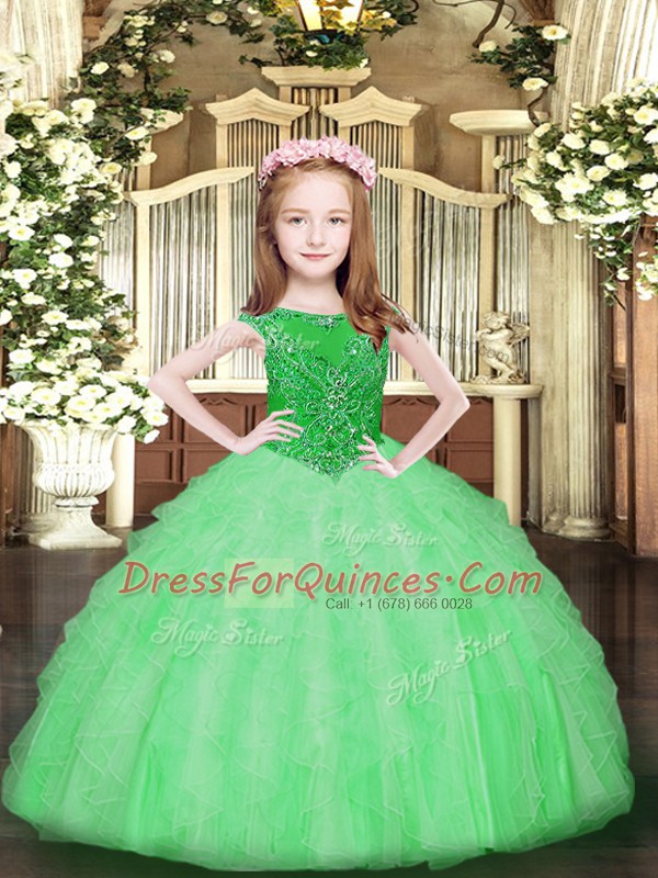 Sleeveless Organza Floor Length Zipper Little Girl Pageant Dress in Apple Green with Beading and Ruffles