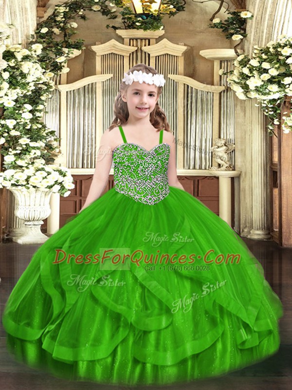 Superior Sleeveless Lace Up Floor Length Beading and Ruffles Little Girl Pageant Dress