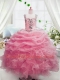 Watermelon Red Ball Gowns Organza Square Sleeveless Beading and Ruffles and Pick Ups Floor Length Zipper Girls Pageant Dresses
