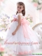 White Little Girl Adorable Pageant Dresses with Pink Waistband and Hand Made Flower
