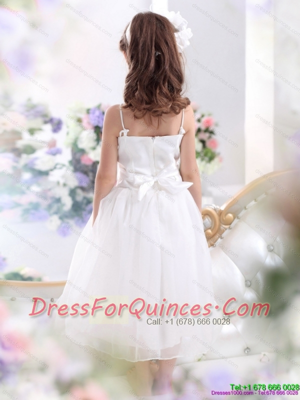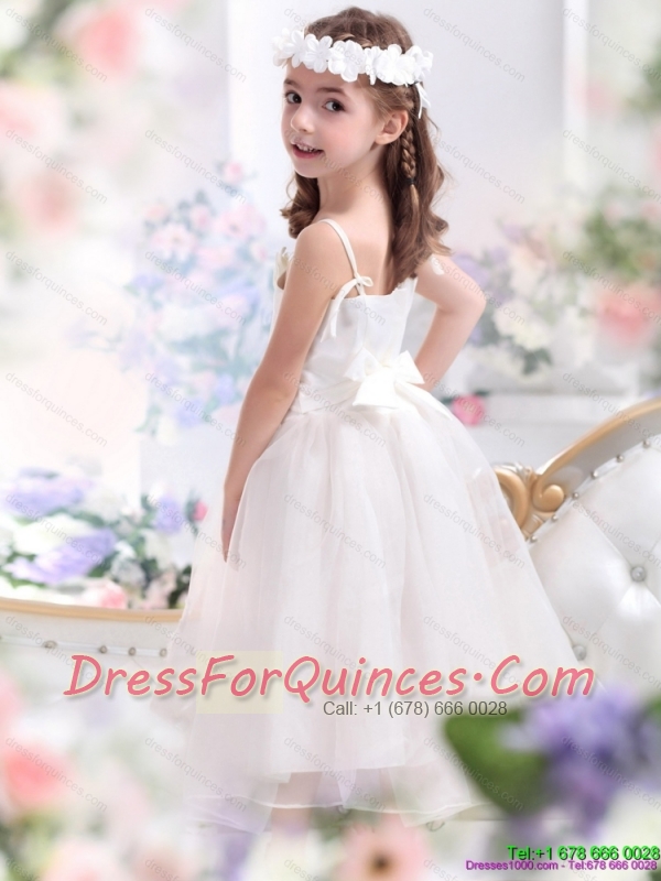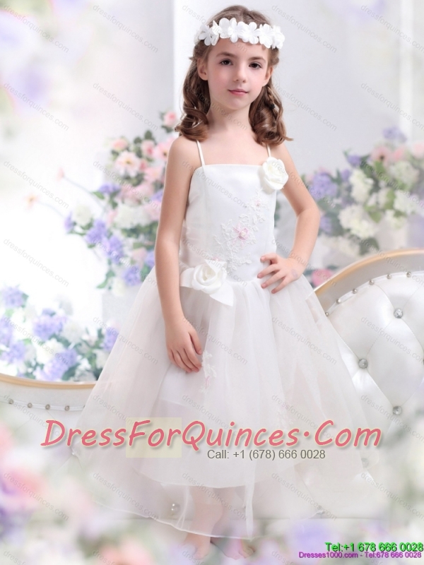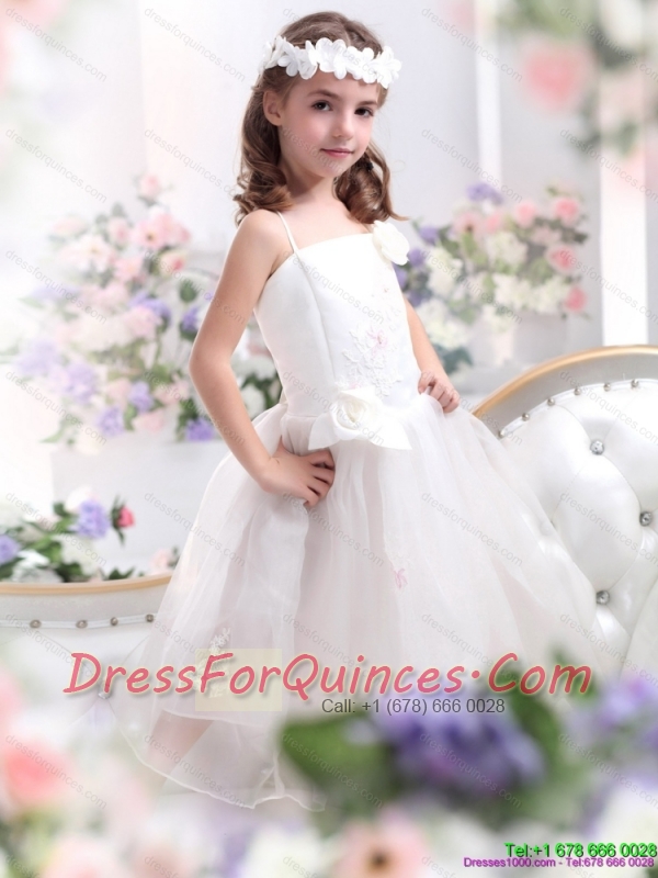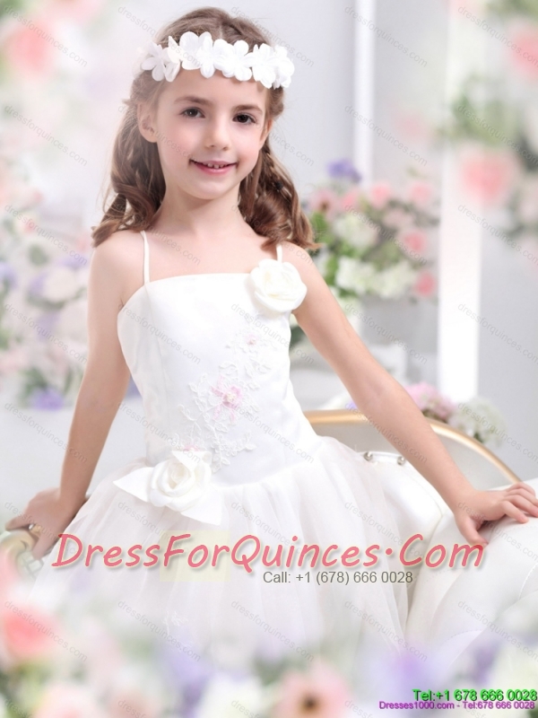 White Spaghetti Straps Adorable Little Girl Pageant Dresses with Hand Made Flower and Appliques