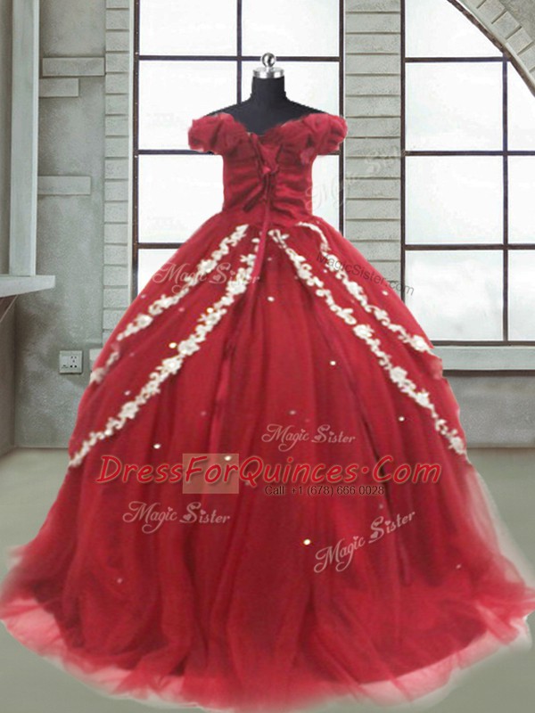 Wine Red Sleeveless Appliques Lace Up Little Girl Pageant Gowns