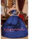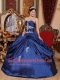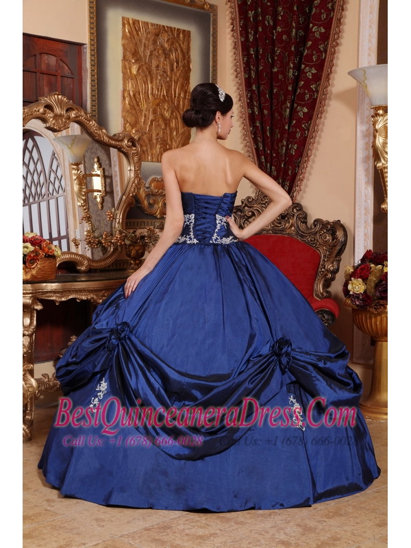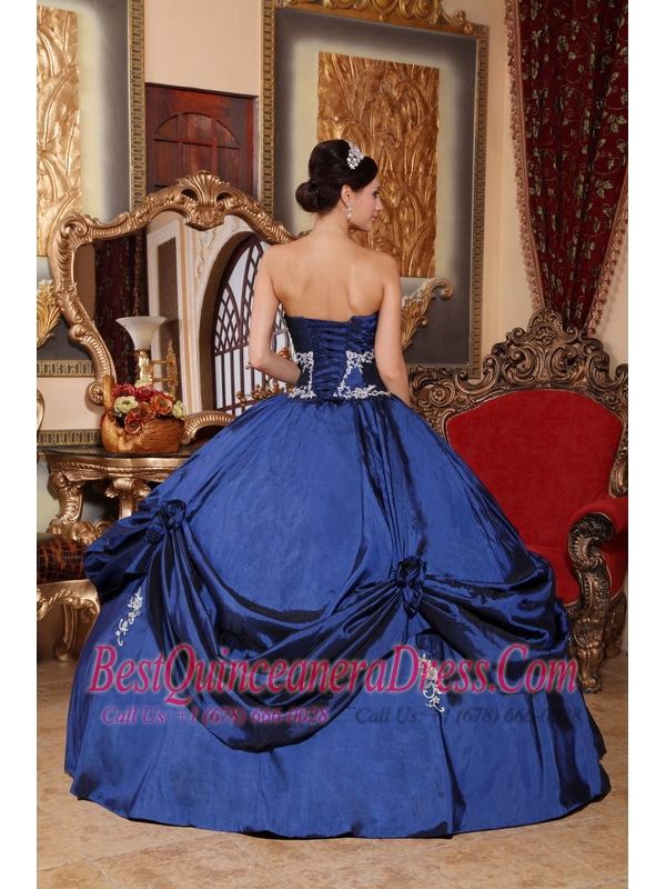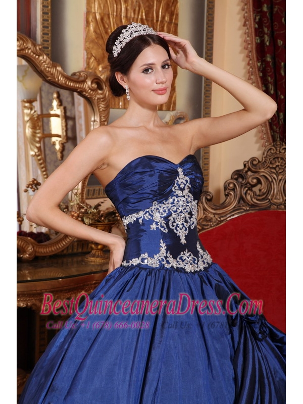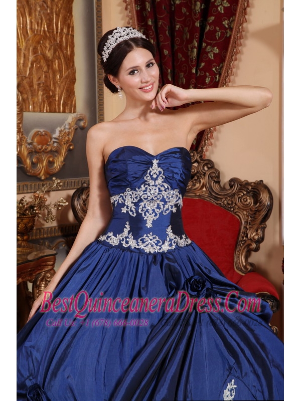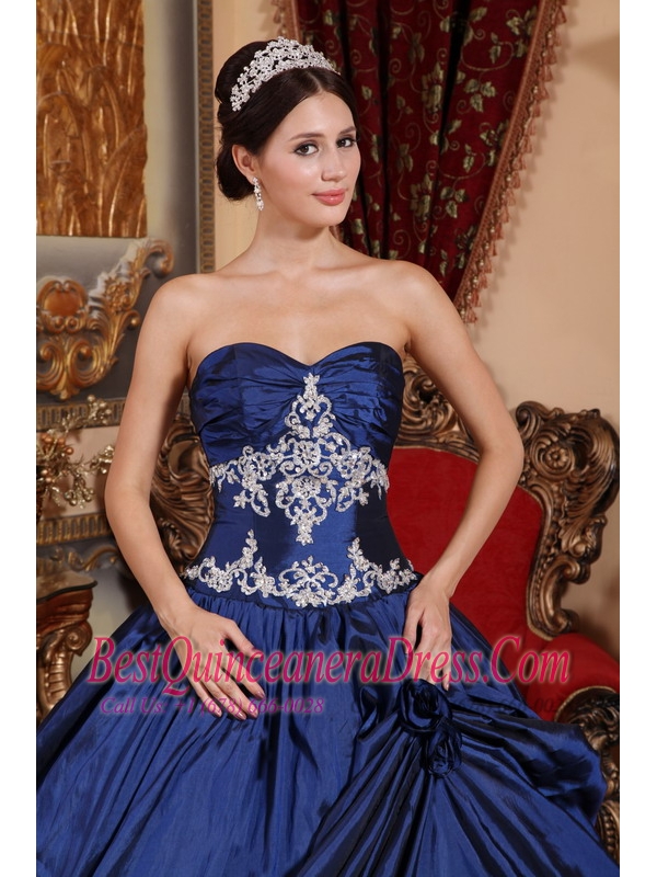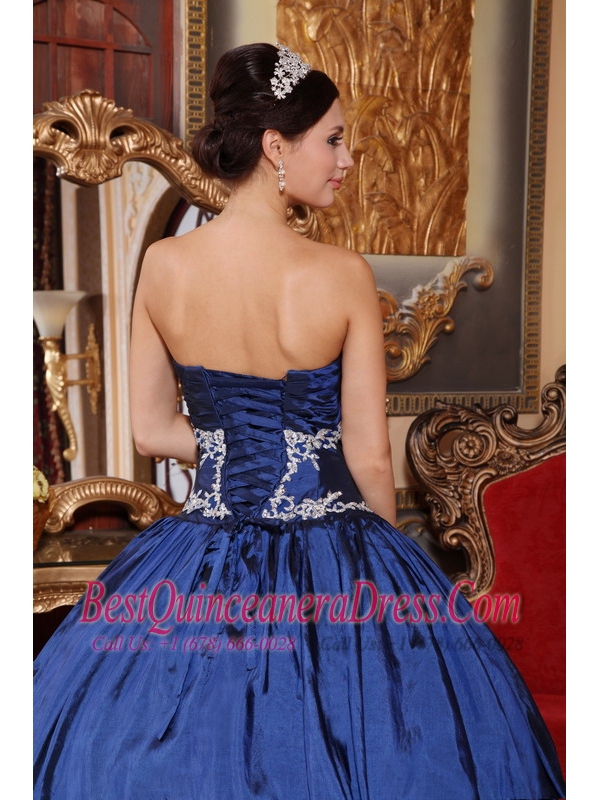 Navy Blue Ball Gown Sweetheart Floor-length Satin Appliques Quinceanera Dress