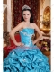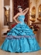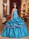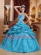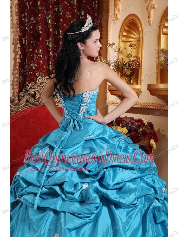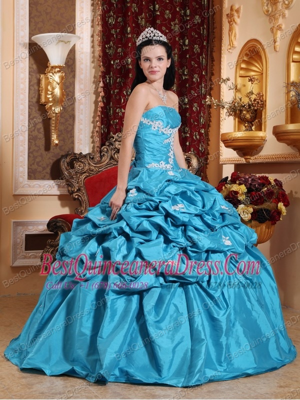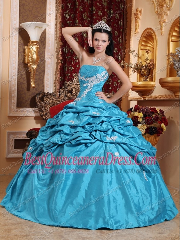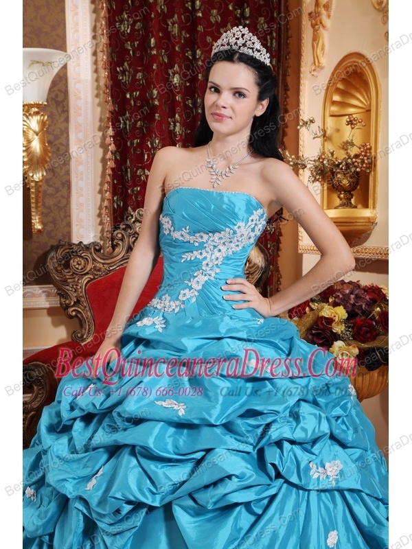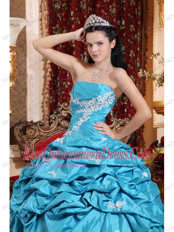 Aqua Blue Ball Gown Strapless Floor-length Taffeta Appliques Quinceanera Dress