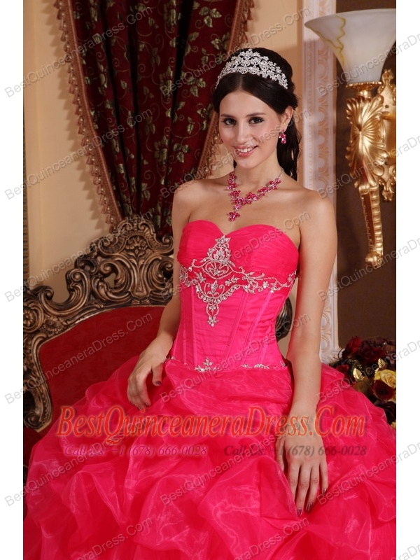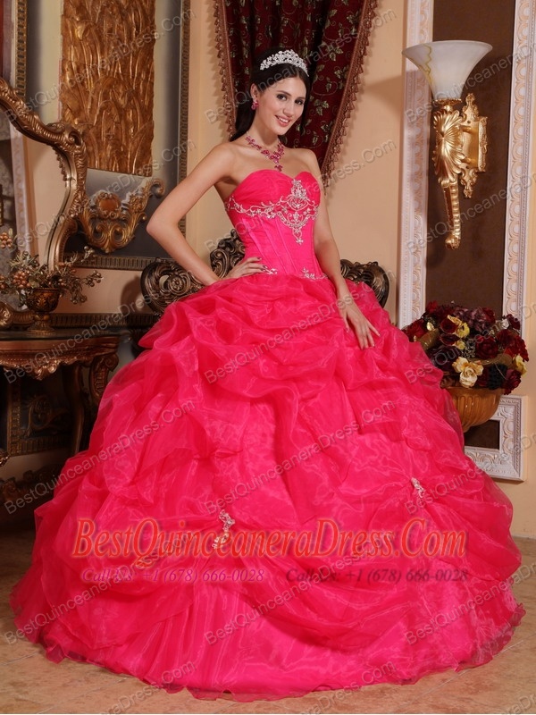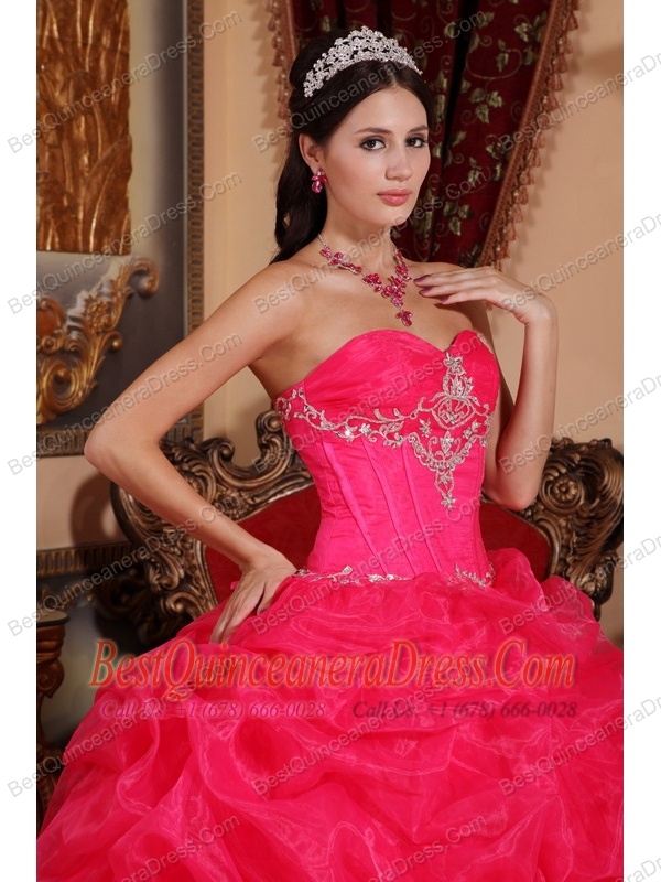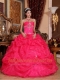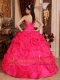 Coral Red Ball Gown Sweetheart Floor-length Organza Beading Quinceanera Dress