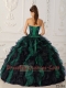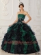 Green and Black Strapless Appliques Taffeta and Organza Beading Ball Gown Dress with Ruffles