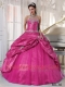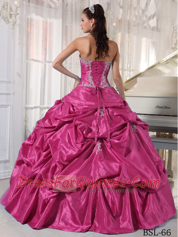 Hot Pink Taffeta and Tulle Strapless Appliques Ball Gown Dress with Beading and Pick Ups