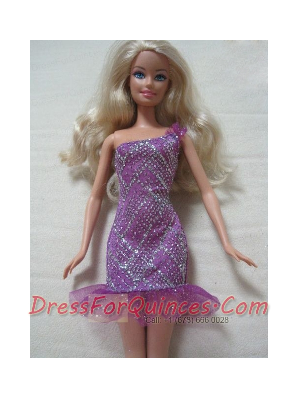 Fashion One Shoulder Mini-length Dress With Beading Gown For Barbie Doll
