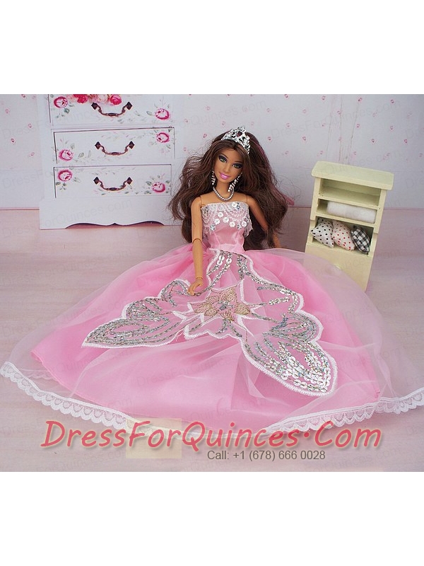 Fashionable Ball Gown Pink Party Clothes Barbie Doll Dress