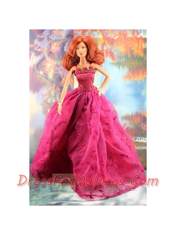 Lovely Embroidery For Hot Pink Barbie Doll Dress