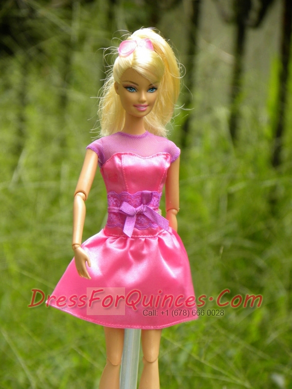 Lovely Handmade Rose Pink Scoop Appliques Sash For Barbie Doll Dress