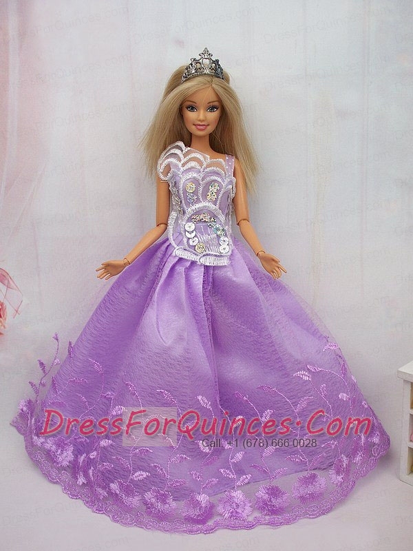 New Beautiful Princess Lilac Lace Handmade Party Clothes Fashion Dress for Noble Barbie