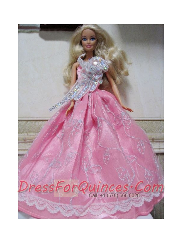 Pretty Rose Pink Princess Dress With Embroidery Made to Fit the Barbie Doll