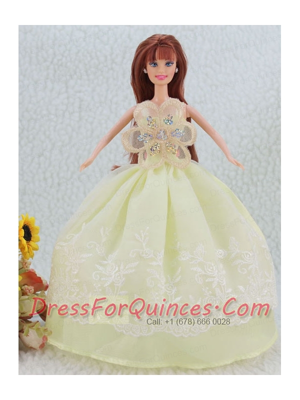 The Most Beautiful Beading and Embroidery Yellow Green Ball Gown Party Clothes Barbie Doll Dress
