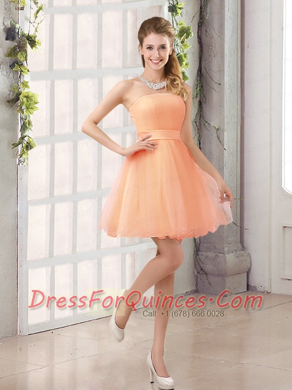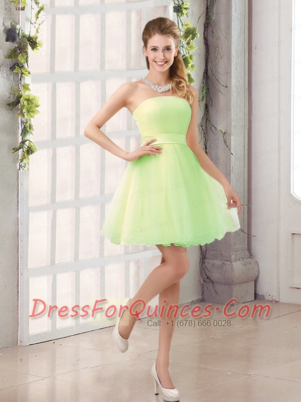 2015 A Line Belt Mini Length Dama Dress with Strapless