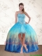 2015 Baby Blue Sweetheart Multi Color Dama Dresses with Ruffles and Beading