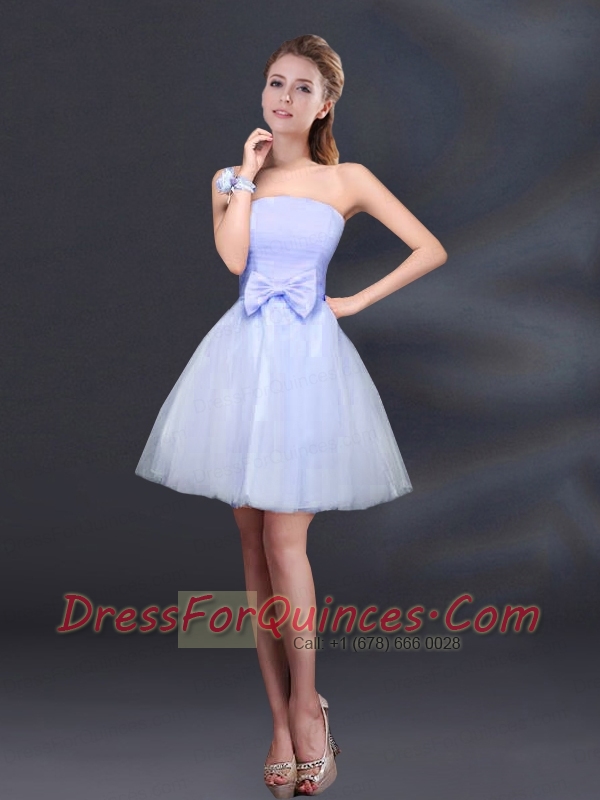 2015 Bowknot A Line Strapless Dama Dress with Lace Up