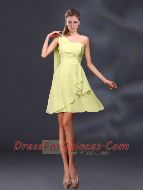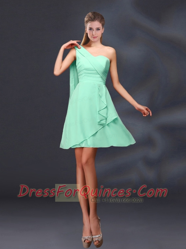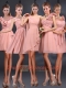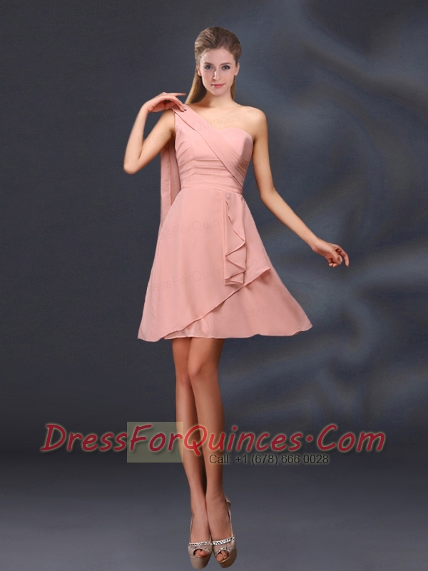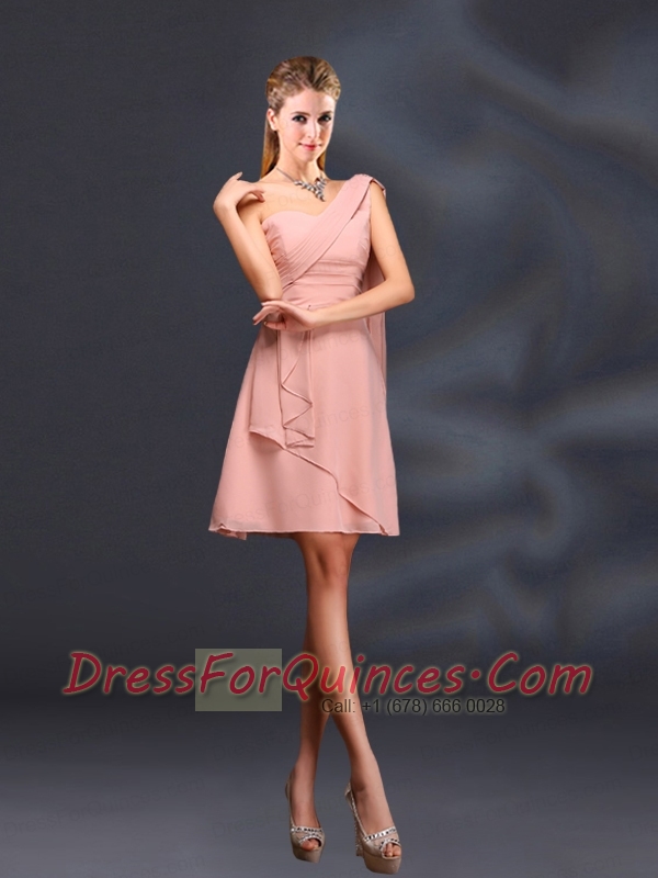 2015 One Shoulder Ruching Chiffon Dama Dresses in Peach