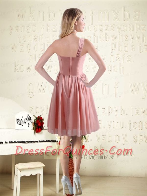 2015 One Shoulder Ruching Empire Chiffon Luxurious Dama Dresses