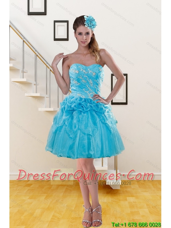2015 Pretty Sweetheart Beaded Aqua Blue Dama Dresses with Beading