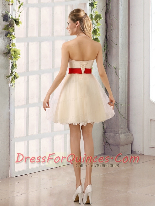A Line Belt Strapless Dama Dress with Mini Length