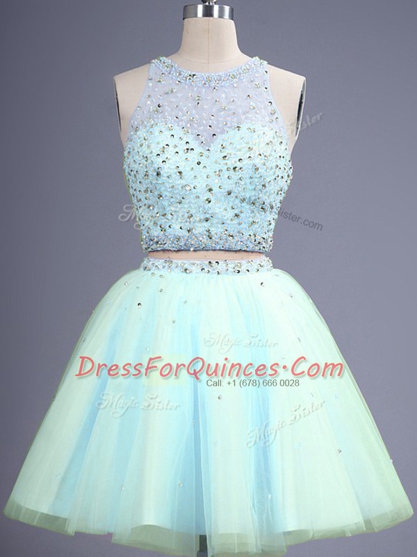 Admirable Beading Quinceanera Dama Dress Light Blue Zipper Sleeveless Knee Length